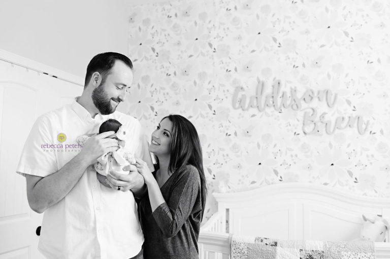 Becoming a parent is a life-changing milestone, and these two are doing SUCH an amazing job already! Addison was incredibly sweet, and absolutely rocked her newborn session. We moved her between mom and dad, in her crib, and various props…& she was so laid back! Her nursery is calm and lovely, and it was an honor to capture their first photos as a family. Congratulations you two!