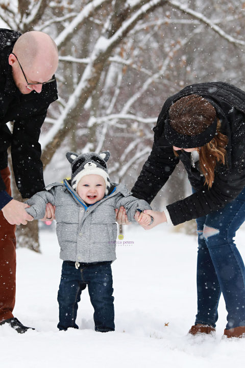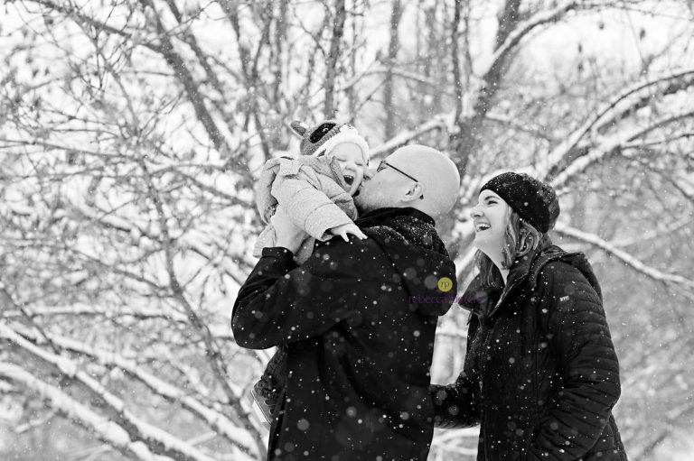 The final session of the Baby’s First Year program is always bittersweet…and when the snow moved-in for Cam’s day at first I was a little sad that we had to be indoors. But once we got to the studio, and I discovered that the family was MORE than willing to step outside for images I was THRILLED! So that’s just what we did…ended the session next to a gas station (and you’d never know) in the lovely falling snow. My favorite images ever!