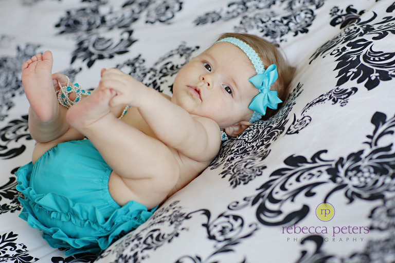 I am always amazed when a 4-month-old can do lots of tummy-time, and be HAPPY about it too! Â Well that is the case with Miss Elyse, and she is a tummy-time champion. Â I also love that mom incorporated Great-grandmother’s handmade necklace into the session (even if we were a little worried Elyse would break it)! Â I cannot wait for the next session to be outdoors when Elyse is truly sitting up on her own — it will be here before we know it!