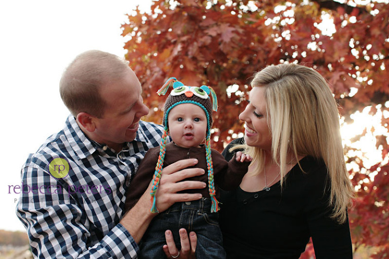 Then I looked into the carrier where I knew Finn was sleeping, and I couldn’t believe my eyes.  He has grown SO MUCH since his newborn session!  But what a little charmer he is.  While he started off a little serious, after some time he had smiles for days… :)  I cannot wait to see him at 8-months!  What a good sport with the owl-hat…Jill and I were just loving it.  Kyle…I think after seeing the pictures he may start to like it too. 🙂