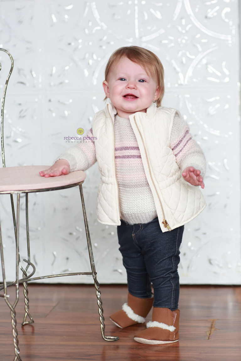 The last time I saw Lex, she was just a little 6-month-old bundle…and now she’s standing, has lots of hair & teeth!  We met in the studio for this Winter-session, and she was just wonderful.  Her blue eyes are so full of wonder, and I can hardly believe she is ONE!  Lots of great stuff here…so enjoy!