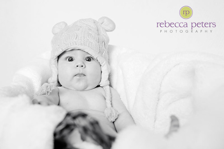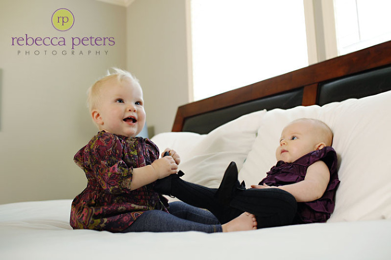 Now that Christmas is over, I can post the other part of Peighton’s 1-year photo session! You see, she has an adorable cousin named McKinley who was turning 4-months — and parents needed some photos of the girls together for a gift. It worked out perfectly! Getting these two to sit together was not an easy task (I believe all 5 of us worked-up a sweat to make it happen!) but it worked. :) Then it was time for McKinley to be in front of the camera solo in a sweet tutu and adorable pink-bear hat. Love those!