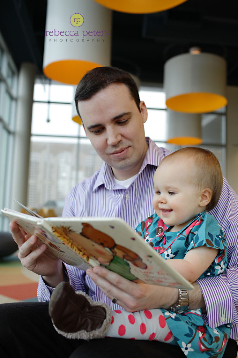 It is always bittersweet when it is time for the 1-year (& last) session of a Baby’s First Year.  They are crawling/learning to walk, they have such amazing little personalities, and you can see some signs of independence.  But I will always think of this little one as a baby… :)  When the weather turned rainy, we knew it was time to find an indoor location for Mia.  She loves books, so the library seemed like a logical choice!  It was perfect, and this session was all about following Mia and letting her choose what she wanted to do.  I loved it!  And did I mention I received a cupcake as well?  LOVE!  The song for her slideshow is one that always stops Mia’s tears (according to Mom) and it will definitely make you smile…