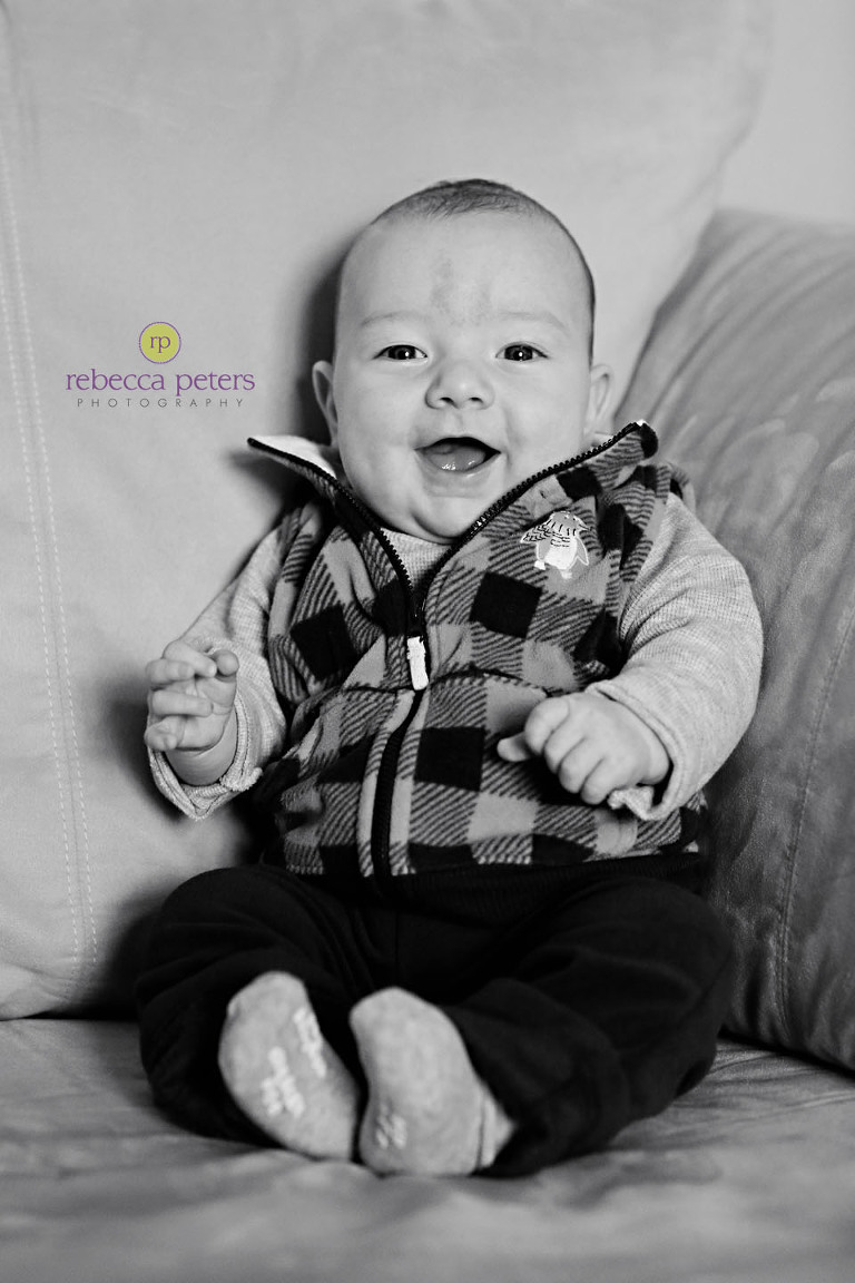 Seeing a little Monkey today will DEFINITELY make you smile…check out that gummy grin on Neal! Â He is 4-months old now, and fitting in 6-12 month clothes…but I love those clothes. Â Especially the purple ones with a power cat on them? 🙂 Â The weather was perfect to capture a few outdoors, and he even rocked some tummy-time out there. Â The first image is definitely my favorite!