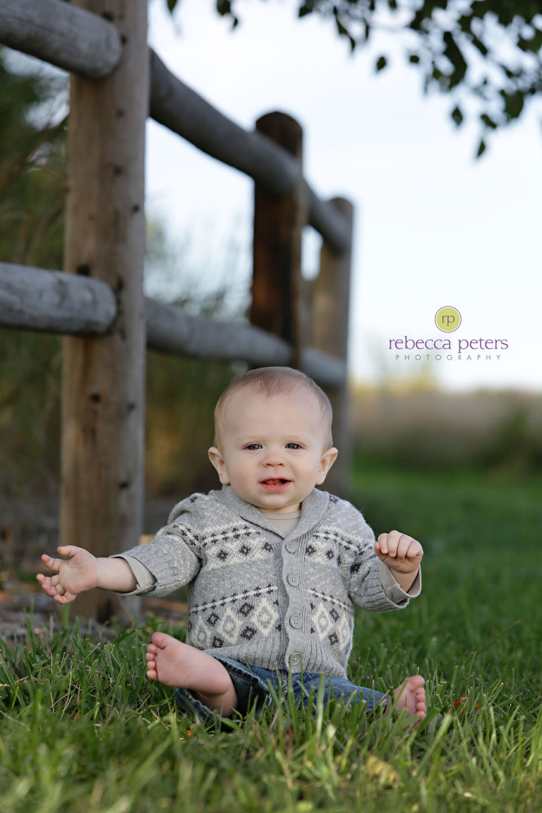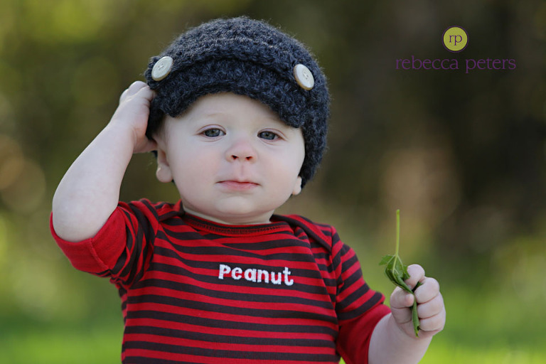 His onesie says it all — “PEANUT”.  He’s a little guy, but a sweet baby with a smile that will MELT YOU!!  He rocked his puffy-vest, cardigan & plaid shirts, and I brought along a little pumpkin which held his attention for all of 4-minutes.  He’s only got one more session in the First Year program, but I’m trying to deny that is the case… 🙂