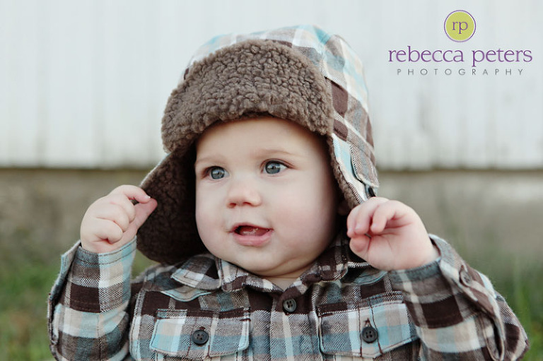 Oh baby Beckham — even though you were more interested in pulling grass from the ground than paying attention to me, that droll and big smile is too precious for words! And the lumberjack outfit? Classic!