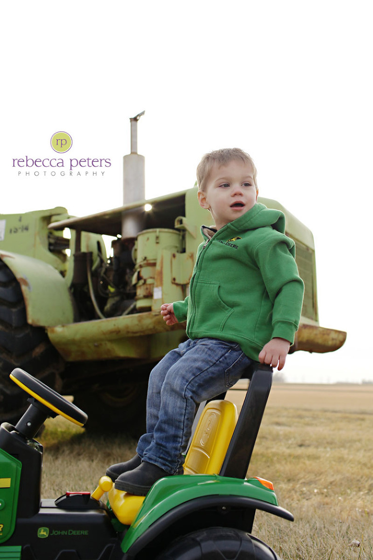 When Mom told me we were going to be shooting her 2-year old on some old tractors — I knew it was going to be a super-fun session! And not just for me, but also for 2-year-old Beckhem! He had a blast in his Hard hat, construction vest, and there was even a mini-tractor (John Deere of course) that we placed next to a full-size piece of machinery…it was amazing. Beckhem had SOOO much fun, that he started to cry when it was time to leave…even though it was kinda chilly outside! I cannot wait to share all of the images… 🙂