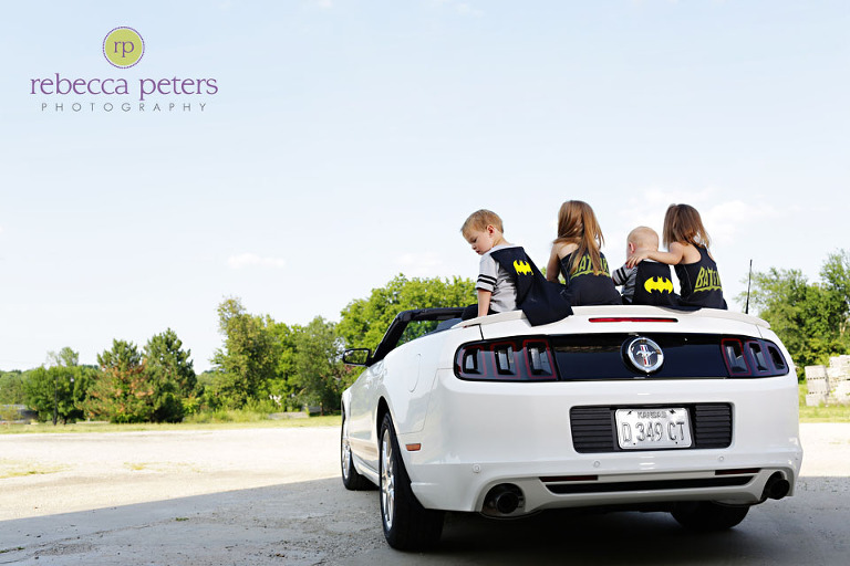 This post had to be kept a secret for awhile, since the Batman-themed images were for a late-Father’s Day celebration! Now that Dad has his gift, it is sharing time! How fun that Mom found all of these adorable “costumes” and then was able to get her hands on a Ford Mustang as a prop. So cool! We parked it in a somewhat empty lot, and the kids had a great time climbing all around/in it. LOVE the shots. But of course the main purpose of the session was to capture Berkley as a 4-year old, and Brixon’s 8-month session on the First Year plan. I remember taking Berkley’s 1-year pictures, so it’s hard to believe my eyes that she’s so big now! I love this family, and all of Mom’s creative ideas for shoots. The one this Fall is going to be REALLY amazing…cannot wait!