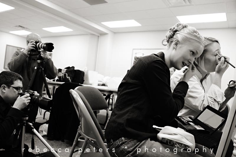 All week the forecast was calling for snow on Saturday, March 28 — but I was not worried. This is Kansas afterall, the state of snow one day, sun the next. But the days continued to pass, and many inches of snow remained on the forecast! After the purchase of a pair of gollashes and legwarmers for the bridesmaids, I made my way to the church in the rain. It did not take long for the rain to turn into huge fluffy snowflakes, creating a beautiful Winter scene for that last weekend of March.